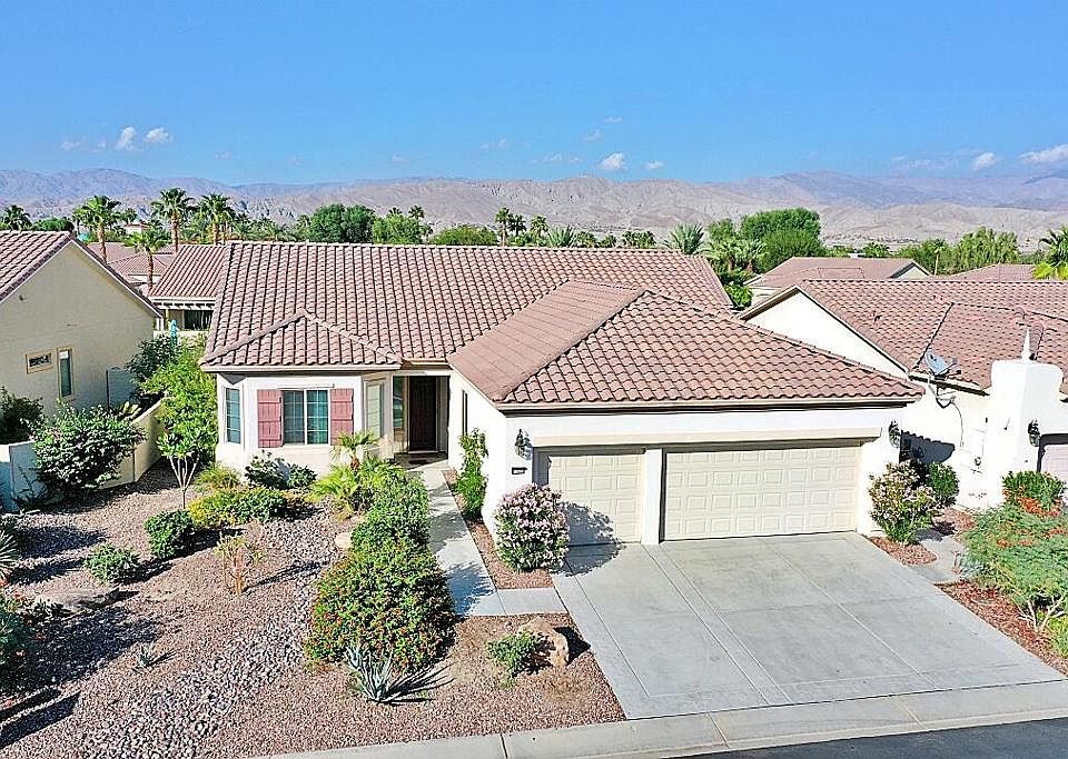 This SAN BENITO MODEL is one of the most popular plans in Sun City Shadow Hills. Features 2 bedrooms, a DEN plus an OFFICE or the grand kids small bedroom when they come to visit. Features that were upgraded in this home are as follows, New WATER Heater(2024) NEW Carrier Air Conditioner(2025), New upgraded custom window covers which open to the top or to the bottom. The window covers facing WEST are heavy duty to help block out the sun when needed as well as window tint film and something to remember; PHASE 1 was quality built using 2X6 construction and hung insolation for best weather control. Some of the flooring has a been upgraded to a Engineered Click Bamboo Flooring. The kitchen appliances have all been upgraded to beautiful Stainless Steele, including a convection oven and carousel microwave. Most cabinets have pull out sections for easy access and maximum storage. The master bedroom suite is extremely spacious for a king size bed, nightstands, dresser and a very spacious and comfortable sitting area. The double vanity bathroom is also spacious and features a shower stall, a separate bath tub, commode and a walk in closet. The home also has a 2 car garage plus a coveted GOLF CART Space; That 's what I'm talking about all you golfers. This home is also equipped with low maintenance landscape so you can spend more time enjoying this awesome neighborhood! Sun City Shadow Hills includes a PGA style regulation golf course, a TOP RATED par 3 golf course and an 18 hole miniature putting venue, ALL with beautiful Mountain, Lakes and Fairway views! SCSH is centrally located with easy access to the freeway, close to shopping, grocery stores, your choice of restaurants from casual to fine dining and in many different cuisine styles. And don't forget you are in the South-Coast, Golf Mecca with over 130 golf courses to choose from, both private and public. An added note for those traveling form a distance, The Palm Springs Airport is also within a 25 minute drive. SCSH is a 55+ community with 2 fitness centers, interior pool, 2 exterior pools, 1 good restaurant, Tennis, Pickle-Ball and Bocce BallCourts, a billiards room, many social clubs and so much more. Don't miss out on this GREAT OPPORTUNITY given by this motivated seller. CALL for Appointment NOW.