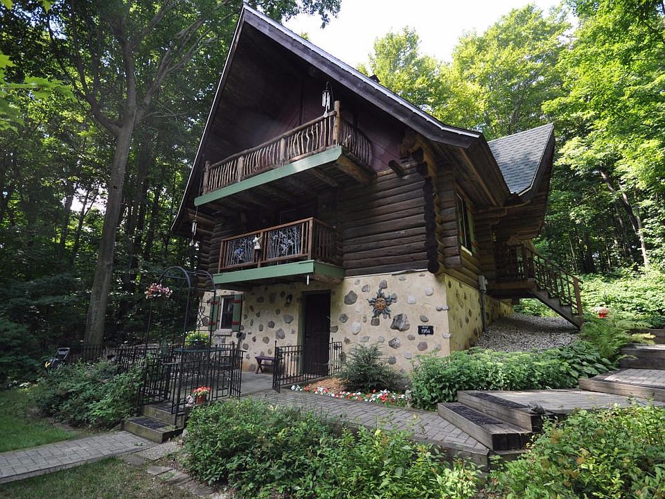 Come see this authentic and private 3BR, 2BA hand-hewn log home on almost 2.5 acres with an up north feel just minutes from West Bend. Features include 3 balconies with great views, new roof with transferable 50 year warranty, Italian tiled basement, not gutters to clean with French drain system. 40x28 heated workshop,