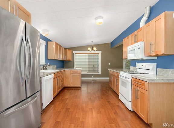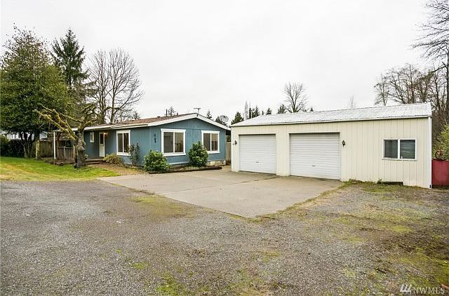 Incredible opportunity to Own in Bothell for under $400k!! Remodeled 2 bedroom/2 bathroom 1 Level home located on large lot. Remodeled Kitchen with hardwood floors, updated cabinets, marble tile counters, updated appliances with wine/beverage refrigerator. Bath off Master with Jetted tub! 826 square foot 2 bay shop/garage with 60amp service is a car lovers/Handymans dream. Covered Porch & 370 sq ft rear deck, RV Parking. Excellent condo alternative with NO dues!!