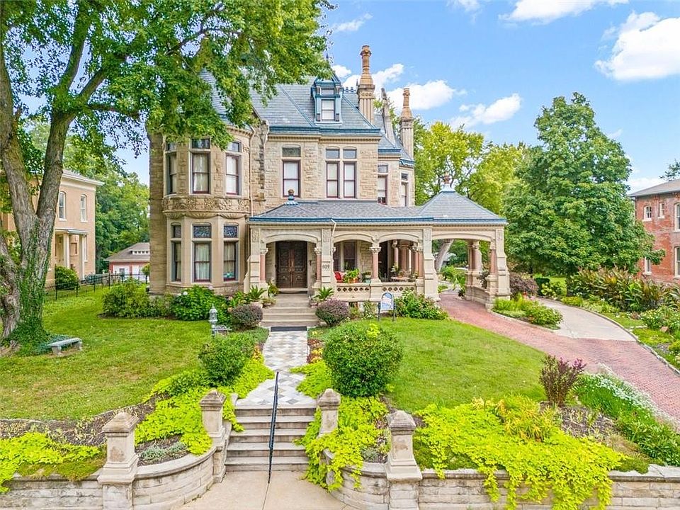 Shakespeare Chateau Inn and Gardens, located in the historic Hall Street District, is one of St. Joseph’s premier homes. A SHORT DRIVE TO KANSAS CITY INTERNATIONAL AIRPORT! Built in 1885, this Chateauesque style home was built by Nathan P. Ogden. This high-Victorian mansion is an architectural gem, showcasing 47 original stained glass windows, exquisite hand-crafted woodwork, an expansive encaustic tile foyer, ornate plaster ceilings, and many original chandeliers - just to name a few. The main house is a fully furnished turn-key bed and breakfast with six elegant suites, a spacious commercial kitchen and wine cellar perfect for small gatherings. Four guest rooms on the second level are furnished with period art and antiques each named after works of Shakespeare. Two additional suites on the third level are ideal for long term guests. The carriage house provides three apartments, perfect for longer-term rentals, adding versatility to the property. 819 Hall Street is also included. This all brick house has been refurbished on the exterior and inside is a blank canvas, stripped to the studs and ready for a transformative rehab. Whether you envision a personal residence, a thriving B&B, or an event space, the possibilities here are endless. Live your dream and make Shakespeare Chateau your next great chapter. This is a RARE OPPORTUNITY to own a piece of history. This house has changed hands only five times in 140 years and remains as magnificent as the day it was built.