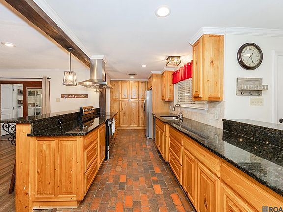 Updated Mid-Century Modern Gem in The Oaks Subdivision. Beautifully updated with modern farmhouse touches, this 3-bedroom, 2.5-bath Mid-Century Modern home offers style, comfort, and plenty of space to entertain. Enjoy front and back porches perfect for relaxing or gathering with family and friends. Inside, the kitchen features granite countertops, custom cypress cabinets, abundant storage, a breakfast bar, and classic brick paver flooring. The stunning living room boasts cathedral ceilings with exposed cypress beams, a ventless fireplace, and access to the back patio. The spacious primary suite includes an en-suite bath with exposed wood ceilings and custom counters. One of the large secondary bedrooms also features an en-suite bath—ideal for guests, an in-law suite, or a home office. Out back, you’ll find a fully fenced yard with a covered patio and a storage area for lawn equipment or outdoor toys. Located in the family-friendly Oaks Subdivision, residents enjoy walking the boulevard, Rivault Park sports programs, festive parades, and nearby access to the Water Heritage Trail, park areas, and the West Baton Rouge Museum. This home perfectly blends Mid-Century charm with modern updates—schedule your private showing today!