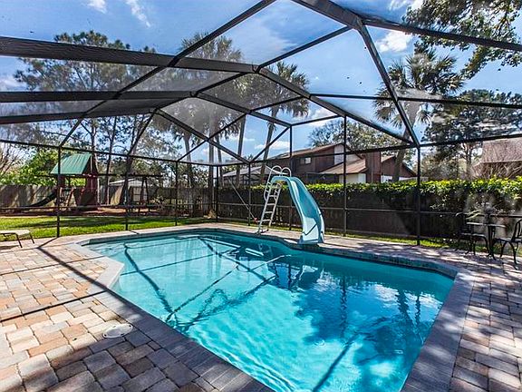 AWC - Taking Backup Offers Prepare to be impressed! This home has been meticulously cared for & updated year after year. From the LUSH LANDSCAPING, CUSTOM CURBING, STONE PAVERS FRONT & BACK, CAMPHOR TREE, perfect for climbing, you will feel surrounded with love. Enjoy the custom, WOOD DECKED front porch, the true HARDWOOD flooring, soothing neutral EARTH TONED PAINT, CROWN, CHAIR & 5 ¼" BASEBOARD MOLDINGS, NEW CARPET, UPDATED KITCHEN w/WOOD CABINETS, Center ISLAND w/sitting, Kenmore STAINLESS STEEL APPLIANCES, CORIAN countertops, GLASS TILE BACKSPLASH, two Food pantries, PLANTATION SHUTTERS, Upgraded baths throughout, inside laundry room w/built in cabinets, folding table, ironing board ....and wait for it....LAUNDRY CHUTE!! accessible from the second level straight to the basket in the laundry room!!! Master Suite screams luxury from the crown molding, to the new master bath w/GRANITE COUNTERTOPS, CUSTOM TILE SHOWER, and CLOSET SYSTEM that has space for everything! Newer FRENCH DOORS lend access from the Family room & the Breakfast Room to your BACKYARD OASIS that boasts room to play & newly refinished pebbletec POOL W/SLIDE, PAVER DECKING & walkways, top of the line WOODPLAY PLAYSET, 8x10 UTILITY SHED, HVAC 2015, new EMERGENCY ELECTRICAL PANEL for your generator, top of the line EPOXY GARAGE FLOOR and more! Home includes water softener, security system, pool safety fence, intercom system w/radio, sprinkler system with St Augustine Lawn, Accent Lighting powered by Solar Panels, and Hurricane rated garage door, all new AC grills