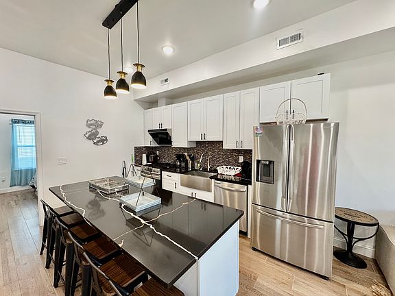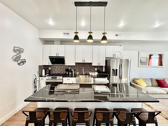 A very large, recently built, 4 bedroom, 4 full bathroom house, with an attached garage with roof deck is available for rent. 2 zones heating and cooling in a super convenient location. Features one large bedroom with it's own bathroom on the first floor with attached garage, it can be rented it out separately. 2nd floor- open lr w/ hardwood floors through out and a large Chef's Kitchen. Electric stove top with oven, stainless steel appliances, built in mocrowave and large island. Beautiful granite countertops with custom tile back splash, one bedroom with one full bathroom, full size front load washer and dryer completes the 2nd floor. Custom stairs going to 3rd floor, featuring 2 bedrooms, each with their own bath. Stairs from the 3rd floor lead to the roof deck. The house includes all furniture and can do short term rental. Please schedule your showing today. This beautiful dream house is waiting for you to call home!