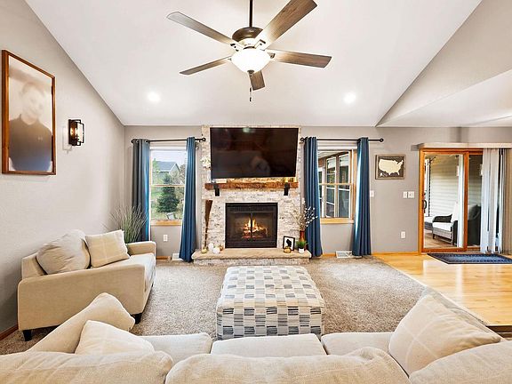 Step inside this beautifully updated 4 bedroom, 3 bath home in the heart of Cambridge! Features include vaulted ceilings, hardwood floors, 3 season sunroom and a cozy gas fireplace. The spacious primary suite offers a walk in closet, plenty of windows, access to the 3 season sunroom and a roomy jetted tub with separate shower. Then, the lower level includes a built in wet bar, full bath, a huge 4th bedroom and tons of storage space! Enjoy the back patio with a large yard - room for everyone to have fun, 3 car garage, and walking distance to the elementary school!