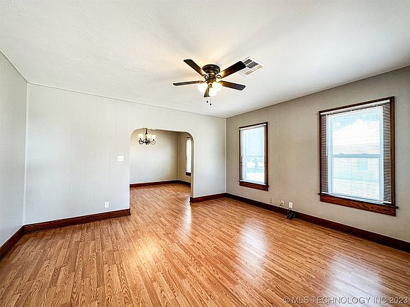 Nestled in the heart of Ada, this 1925 beauty welcomes you with open arms. At 1,188 square feet, this 2-bed, 1.5-bath home is a testament to the artistry of a bygone era, lovingly updated to blend its timeless charm with modern convenience, while retaining its original character. Newly renovated, this house shines with fresh paint that breathes new life into every room. Step inside and be greeted by the warm embrace of wood-look laminate plank flooring whose gleam lends a helping hand to the already abundant natural lighting. The kitchen, the heart of the home, boasts a fresh and clean look, ready for culinary adventures and shared meals. New light fixtures throughout the home illuminate the space, creating a cozy atmosphere that's perfect for both everyday living and entertaining. Sip your morning coffee on the partial wraparound front porch, a charming spot to watch the world go by. In the shaded backyard, discover your private oasis, ideal for summer barbecues, gardening, or simply unwinding after a long day. The icing on the cake: you're just blocks away from Willard Elementary and East Central University, making this location not only charming but supremely convenient for families and academics alike. This is your chance to own a piece of history without sacrificing modern comforts. Don't miss out on this adorable 1925 house that seamlessly marries the past and the present. Schedule your private viewing today and let this charming abode become your new chapter in time. Welcome home!