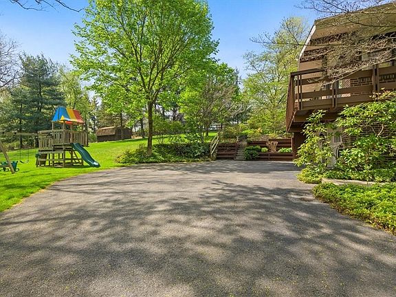 Mid-century chic on 1.2 acres in the heart of Fox Chapel Borough! Beautiful private setting with mature trees, perennial gardens, a large stone patio, and a level grassy area. The home itself is architecturally unique and truly one of a kind. The split entry foyer leads to the spacious vaulted living room with tons of natural light and a woodburning fireplace. Beyond the formal dining room and updated kitchen (with so much cabinet space!) is the sunken sunroom with gas log fireplace. Also on the main level are three spacious bedrooms, including the primary suite with updated bath, plus a fourth bedroom or office. Another updated full bath for the secondary bedrooms is in the hallway. With plenty of natural light and new carpet, the lower level family room is ideal for a playroom, exercise space, or gameroom. The lower level is also home to an additional bedroom and third full bath, making it the perfect space for guests. Welcome home!