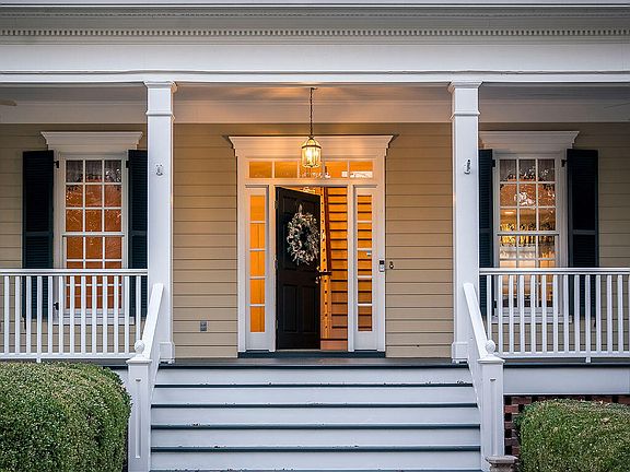 Pull into the circular driveway, walk up the steps onto the broad rocking chair covered front porch and walk through the welcoming entrance into the gracious foyer. As you step inside this residence, you will notice the inviting floor plan offers a great flow for entertaining, seamlessly integrating the entry hall, the living room with wood burning fireplace/custom mantle, the formal dining room and the large kitchen/Great Room with library shelves and cozy fireplace. There is a practical butlers pantry between the kitchen and dining room with plenty of storage for china and glassware.