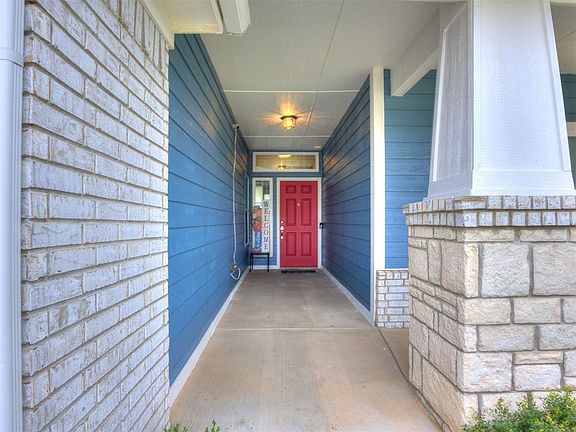 GORGEOUS 4 bedroom 2 bath home in MUSTANG SCHOOLS! This home sits across the street from the beautiful fishing pond with dock!  This quiet street, with little traffic, makes for a peaceful time sitting on the cozy front porch having a drink!  The kitchen is a chef's dream with stainless steel appliances, gas range,  elegant backsplash, large island, and dining room. The open concept kitchen and living room are perfect for your family and entertaining! This home boasts a large primary suite with two vanities, a soaking tub and walk-in closet. The back patio offers a fireplace that is great for cool evenings.  This home also has 3 secondary bedrooms and a study with double doors!  The very large laundry room includes a folding counter and mud bench!  To top it off this home has a storm shelter in the garage!  Contact me today for your private showing!