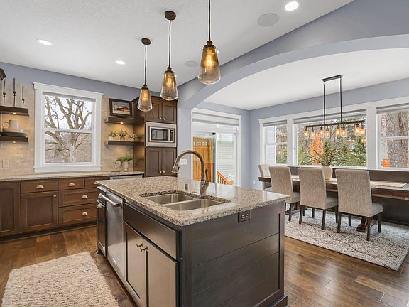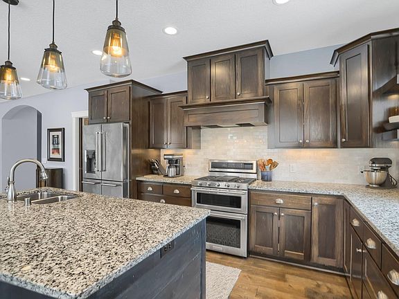 Stunning 2016-built rambler sits on a corner lot in the Great Oaks Neighborhood - a quiet non-through street neighborhood. Step inside, you'll immediately notice the abundance of natural light flooding the space from numerous windows in the great room & throughout the main flr. The gourmet kitchen complete with high-end appliances, granite countertops, custom cabinetry with pullouts. The adjacent dining area features built-in bench seating - plenty of room for hosting family and friends. The main floor office provides a private and comfortable workspace. The primary suite is a relaxing oasis w/a luxurious en suite bathroom and walk-in closet with organizers. Downstairs features a large amusement/game room and wet bar that's perfect for movie nights or entertaining friends and family. 1 en suite bedroom with large lookout window, 2 add'l bdrms, a full bath and lots of storage closets. Enjoy the outdoors on the front porch, deck, or paver patio. 3 car garage + workspace is a bonus!