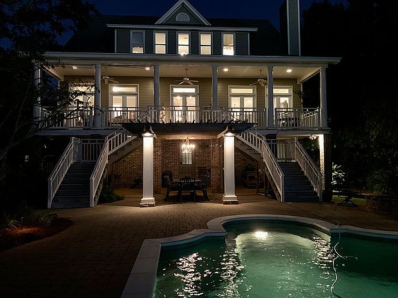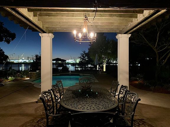 The owner of this home is a licensed Real Estate Agent in Mississippi, for sale by Owner. Waterfront custom built home in 2000. First living floor features a wide center hallway allowing the water view from the front of the home, formal dining room, open concept kitchen and great room overlooking the Lake Yazoo, office, laundry room, spacious primary bedroom with ensuite bath and walk-in closet. A large balcony spreads the back of the home with space for outdoor dining and lounging. The second floor features a large bedroom with ensuite bathroom, walk-in closet and attached nursery/playroom. There are two additional spacious bedrooms which share a large Jack & Jill bathroom each with walk-in closets. There are four large storage closets and a landing bonus room on this floor as well. The large garage in the entire first floor and can accommodate 3 cars and a golf cart. There is also a large storage room and a workshop/tool room. The beautifully landscaped backyard features a covered patio, custom gunite pool, natural gas fire pit, pergola covered dining area all on large Belgard paver patio. The landscaped backyard has irrigation system and landscape lighting and leads to a pier with covered boat lift. First living floor elevation is 16'3" and did not get water inside during Hurricane Katrina.