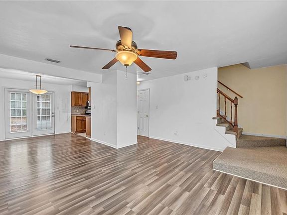 Brick front townhomeTwo spacious bedrooms upstairsGalley-style kitchenUpgraded vinyl plank flooringStainless steel appliances