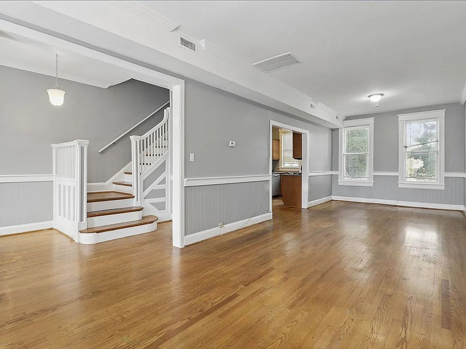 This fully updated home will draw you in with its curb appeal and dazzle you with its modern flair. The moment you walk in, you are welcomed in by beautiful hardwood floors throughout the main and upper levels! The living room lets in plenty of natural sunlight. There is also a dedicated dining room which enlarges the space. This spacious kitchen is equipped with granite countertops, stainless steel appliances, plenty of cabinet space. There is also a rear entry from the kitchen that connects to the rear parking pad, where you have 1 included parking spot!