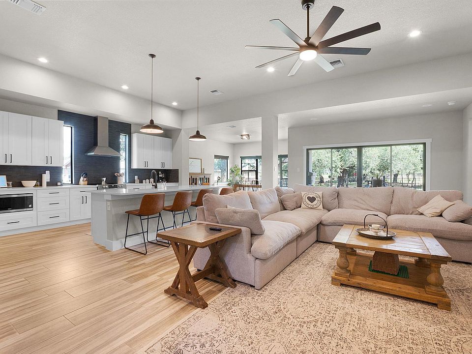 Modern Comfort Meets Hill Country Charm in Rockin J Ranch Discover this beautifully appointed single-story home in the exclusive gated section of Rockin J Ranch, just minutes from the acclaimed Vaaler Creek Golf Course. Built in 2022, this home offers 2,651 square feet of stylish and functional living space with 4 bedrooms, 3 full bathrooms, and a flex room perfect for a home office, media room, or guest suite. ?? Interior Highlights: Wood-look tile flooring throughout – no carpet for easy maintenance and a sleek, modern finish. Soaring ceilings and abundant natural light create an open, airy feel in the main living areas. A cozy fireplace adds warmth and charm to the spacious family room. Ceiling fans in key rooms enhance airflow and comfort year-round. A chef’s kitchen featuring ample counter space and modern finishes flows seamlessly into the dining and living areas—ideal for entertaining or quiet evenings at home. Primary suite includes a luxurious en-suite bath and generous walk-in closet. Garage floor is sealed for added durability and a clean, finished look. ?? Community & Lifestyle Perks: Located in a premier section of Rockin J Ranch, homeowners enjoy access to: A resort-style community pool and lounging area—perfect for summer relaxation and socializing. Scenic walking trails, nature views, and quick access to the Vaaler Creek Golf Course. A convenient on-site hotel—great for accommodating visiting friends and family just minutes from your front door. Peace of mind with a gated entrance, offering added privacy and security. 3 Rounds of golf per month are included with the purchase of the home With high-end finishes, modern comforts, and unbeatable amenities, this home is a perfect blend of Hill Country charm and contemporary living. Schedule your private showing today and experience the lifestyle that Rockin J Ranch has to offer!