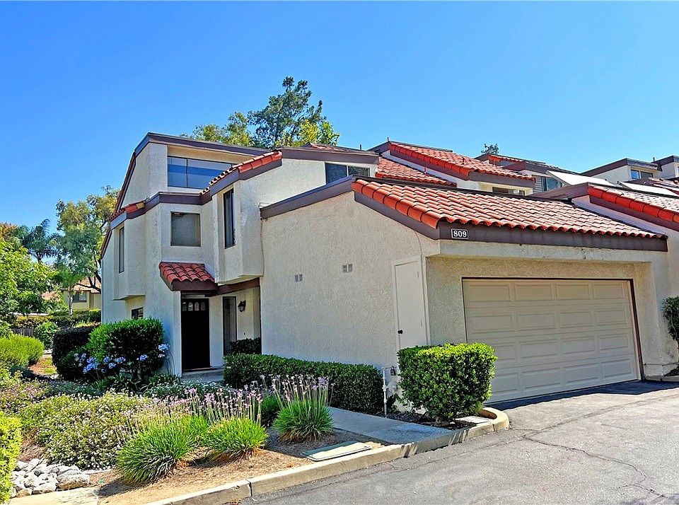 Lovely end unit condo in the Club Terrace community. An elegant landscaped path leads you home to this beautifully renovated two bedroom condo. Enter to cathedral ceilings with lots of natural light, luxury vinyl plank flooring throughout most of the home, a fireplace in the living room with duel sliding doors to the patio. The dining area off the living room has a wet bar & plenty of storage. The newly renovated kitchen offers modern color scheme, quartz counters, farmhouse sink, tray ceiling with recessed lights & additional eating area and direct access to the garage. There is also a half bath downstairs. The second level offers two master bedrooms. The master suite has its own fireplace, balcony, large dual closets, two vanity's, tub and a separate shower & toilet room. The second master offers high beamed ceiling, lots of natural lighting, and a bathroom with full tub & shower. Rear patio has been tastefully designed with artificial turf, stepping stones, a corner planter with a young plum tree & rear gate access. The two car garage has direct access to the kitchen, a large storage area with drop down stair access & laundry hookups. This home original was a model for the builder because of its ideal location in the community at the end of the end of a cul-de-sac while only steps away from the community amenities. These amenities include pool, spa, lush landscaping, guest parking and trash service. Close to the Claremont Club, colleges, restaurants, shops, and much more.
