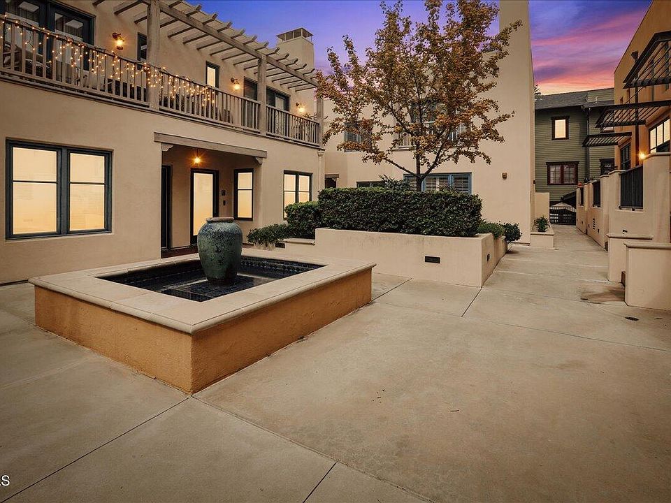 AWARD WINNING SOUTH PASADENA SCHOOL DISTRICT AND A WORK FROM HOME SANCTUARY Located in the heart of South Pasadena's historic downtown district, the Mission Meridian Village designed by Moule & Polyzoides marries the privileges of city living to the luxury of privacy rarely found in an urban landscape. This particular townhouse is uniquely located in the center of the complex giving it the most privacy. Wake up to the smell of Heirloom Bakery's fresh baked bread and pastries while enjoying pleasant south facing views of a richly landscaped courtyard and fountain. Walk to Trader Joes, local shops and restaurants as well as a lovely farmers market every Thursday next to the metro station (Walk Score 92). Commute to downtown easily by hopping on the Gold Line located directly across Mission St. Designed for a combined residential and home professional use, this townhouse offers a quiet escape to focus on your work which is essential in today's work from home culture. Kids and parents love South Pasadena's award winning school as well as the many parks and fields for kids to play. The living room, formal dining room, kitchen with dark stained cabinets and granite counter tops, half bath and a terracotta tiled private patio make up the ground floor. Above, the second floor offers a brightly lit master bedroom with a south facing balcony and ensuite bathroom, a sky light brightens up the hallway leading to two bedrooms that share a tiled bathroom. Custom built-ins in the bedrooms, plantation shutters and wood floors throughout bring the space together for a warm homey feel. Gated underground parking with two parking spaces (tandem) with elevator and stairway access.