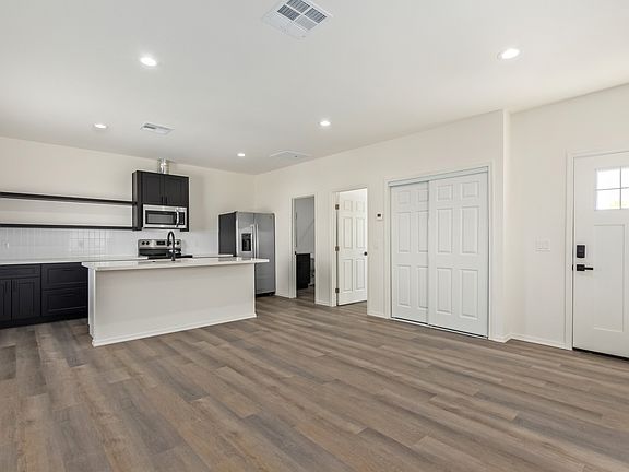 Dedicated parkingFloating shelvesModern open-concept layoutsUpscale finishesWhite quartz countertopsTile backsplashesStainless steel appliances