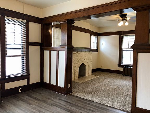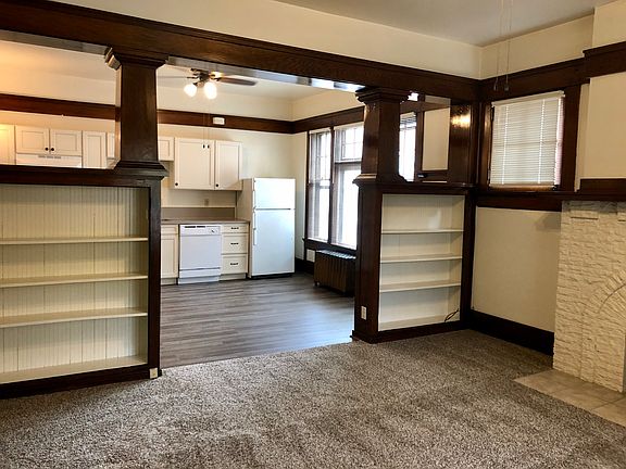 This spacious unit features tall ceilings, original woodwork throughout, a beautiful (non-functioning) fireplace hearth, built-in bookcases, and hand-milled wooden trim work. Large living room and kitchen for entertaining. Front porch facing 7th Street.