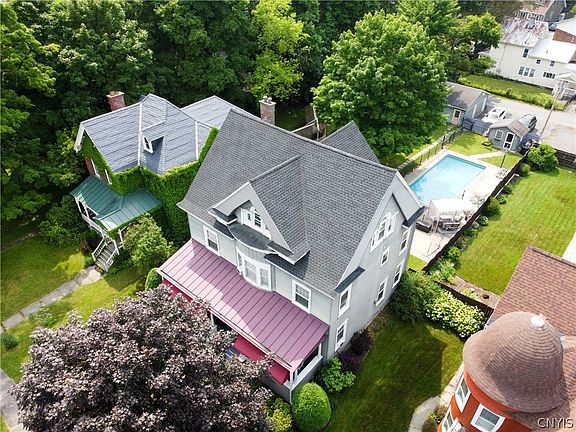 This breathtaking 4-bedroom, 1.5-bathroom, 3,200 square foot home is the epitome of an entertainer's paradise. The first floor features a gorgeously updated (2019) Fahy Kitchen with quartz countertops, soft-close cabinets, new appliances and flooring. A spacious foyer, living room, library, and half bath complete the first level. Ascend via the main front staircase or the rear stairs to the second floor, which houses four bedrooms and one full bathroom. The third floor presents a realm of possibilities, prepped for an additional bathroom, offering the potential to transform it into a luxurious master suite, children's playroom, gym, or home theater. The outdoor area is a true sanctuary, boasting an expanded concrete patio, a pool house with an additional half bath, and a heated in-ground pool that serves as the ultimate gathering spot. With a two-stall detached garage, children's play area, and a back deck, there's no need to ever leave the comfort of your backyard. Come over and dip your toes in to experience it for yourself.
