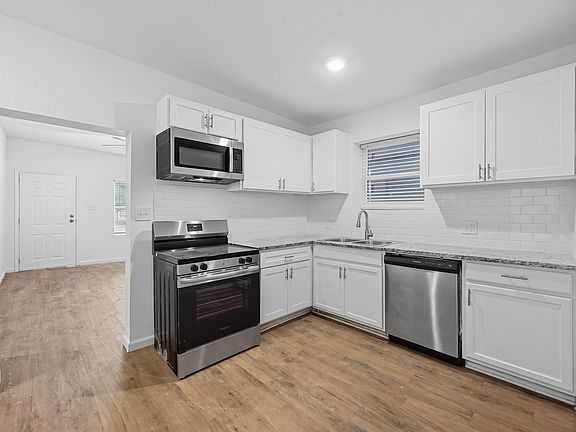 From the moment you step inside, you'll be wowed by the bright and spacious living area, highlighted by elegant vinyl wood flooring that flows throughout the home. The fully remodeled kitchen is an absolute dreamfeaturing sparkling granite countertops, stainless steel appliances, and ample cabinet and prep space. Whether you love cooking at home or entertaining guests, this kitchen is designed to impress!