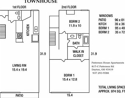 2 Bedroom 1.5 Bath Townhouse with Back Patio & Wood beam CeilingsPatio, Wood Beam Ceilings Stack Washer/Dryer Hookup