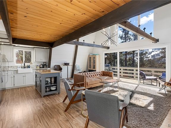 Perched at over 7100 ft., prepare to be blown away by the stunning views of Snow Summit and Bear Mountain. Inside, you'll find a cozy haven with panoramic vistas of majestic mountains and serene forests, providing the perfect backdrop for your mountain getaway.