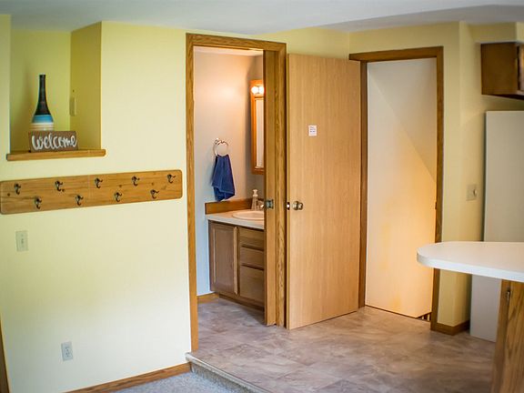 This ranch home offers you much more than "standard". Large entry area with 1/2 bath gives you lots of space to hall in groceries & peel off layers of coats in our winter months. Eat at bar area in the kitchen give you another dining option. Egress basement window gives you a forth bedroom! The kitchen cabinets wrap around to the dining area giving you tons of storage. Two sets of patio doors lead to a large fenced yard & deck. New carpet in finished lower level with family room, 4th bedroom & bar.