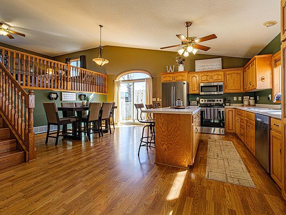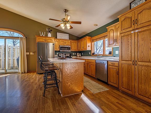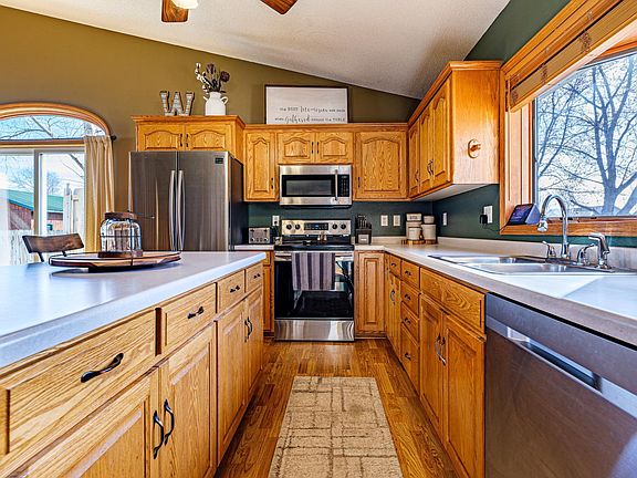 4 bedroom 2 bath home on a quiet street. Home features a kitchen with oak cabinets, a pantry cabinet & center island, s.s. appliances. Master bedroom with a walk-in closet, living room has a patio door to a spacious deck. 3 car garage is insulated and heated. New roof in 2019.