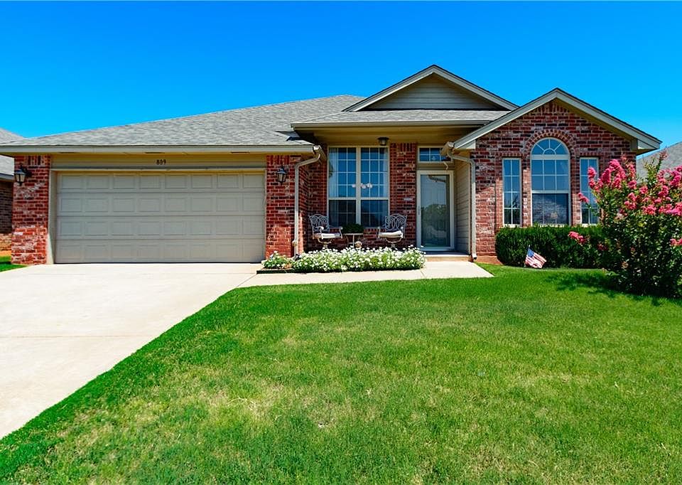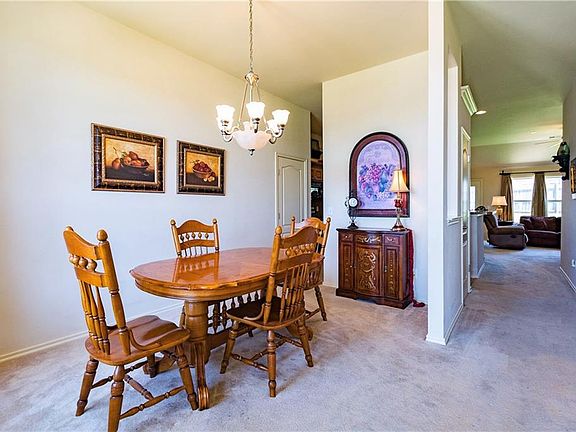 This lovely one owner home has been well cared for and it shows! It has so many great features like the walk in storm shelter/safe room in the garage, the glass storm doors on both the front and back doors, the back door with built in blinds, the large utility/mud room and the enlarged patio just to name a few! The spacious living room is open to the kitchen for todays modern lifestyle and offers a great breakfast bar! The large windows allow for an abundance of natural light and views of the private backyard! The kitchen has plenty of counter space and a step in pantry! The owners bedroom is huge and has a walk in closet and full bathroom with double vanities! The back patio has been enlarged and offers great entertaining space! The dining area has a neat art ledge! There is a coat closet, a pantry and linen closet and the utility room is super with the washer/dryer behind closed doors and extra space for a bench, counter or even an extra frig! Don't miss out on this special home!