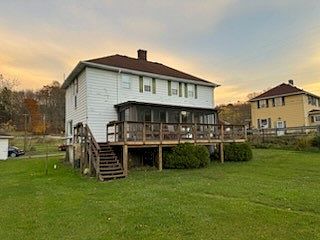 GREAT FIXER WITH LOTS OF POTENTIAL. THIS HOUSE COULD SHINE AS A SINGLE FAMILY OR CONVERTED BACK INTO DUPLEX FOR INCOME GENERATOR. FORMER COMPANY HOUSE CONVERTED INTO SINGLE FAMILY HOME. HAS DOUBLE STAIRS, TWO FRONT DOORS AND KITCHEN ON ONE SIDE HAS BEEN CONVERTED INTO LAUNDRY AND FULL BATHROOM. FIRST FLOOR INCLUDES A LARGE LIVING ROOM, DINING ROOM AND KITCHEN. BEAUTIFUL SUNROOM AND DECK ON THE BACK OF THE HOUSE, PERFECT TO WATCH SUNSETS OR THE KIDS PLAYING IN THE LARGE BACK AND SIDE YARDS. LARGE BATH ON 2ND FLOOR HAS HUGE TUB AND SHOWER.