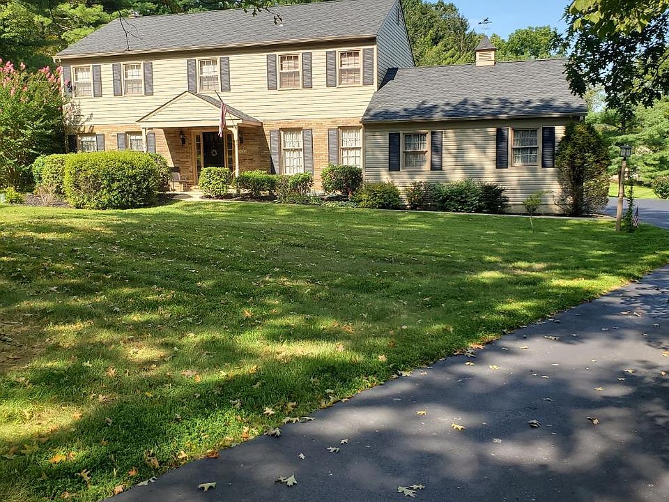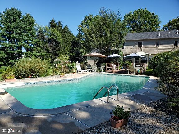 809 Tally-Ho Ln. As you drive through a canopy of mature maple trees along Tally-Ho Lane, you arrive at 809 with two beautiful brown horses grazing across the street. The house is a 4 bedroom, 2 ½ bath center hall colonial, oversized 2 car garage, a 41 x19 ft. in ground swimming pool with diving board. This is a two acre lot with mature trees and shrubs, a variety of perennial shrubs and flowers, a private fenced garden area, areas of pachysandra and English ivy groundcover with ferns. Of course, there’s plenty of room for kids and pets to play games and run around in the grass. Newer roof, siding, and driveway sealer. This could be your own private resort in a very private and quiet neighborhood, where wonderful neighbors get together for food, fun and fellowship three times a year. Center hall stairway with powder room and clothes closet. Large living room and intimate dining room with chair rail and crown moulding throughout first floor. Modern kitchen with double wall ovens, smooth top stove, granite countertops with designer tile back splash, plus, large work island with two seating areas. Solid cherry cabinets are floor to ceiling with custom crown moulding, and a large double porcelain sink. Mud room/laundry room with sink and pantry cabinet, leading to the attached double, oversized garage. Kitchen leads into large family room with wood burning stove, recessed lighting, built in bookshelves and crown molding. A Sliding door opens to very large 3 season sunroom, with two ceiling fans and a flood of light throughout the day. Custom Hardwood floors throughout house, tiled kitchen, and 2nd floor hall bath floors, with marble flooring and shower surround in primary bathroom. Primary bathroom has shower with easy to clean solid walls with a two person, heated Jacuzzi tub and includes a custom tall sink with 4 drawer chest plus a utility/medicine closet. All 4 bedrooms have large, lighted closets and two with ceiling fans. All interior doors are six paneled. Attic steps with locking door, lead to a large storage area with a separate, lighted, custom cedar closet. Carpeted steps lead to a half-finished basement with recessed lighting, plus an extra-large unfinished storage area with the utility systems equipment, including the “power set” control panel for the emergency propane generator, and a separate utility/pump room. The entire interior perimeter wall has a French drain system installed. Enjoy your own, fresh unlimited, conditioned well water as you look out into the landscaped yard enjoying your retreat, while viewing the numerous species of birds all year long. This home is in the highly acclaimed Downingtown District. Home is only 3.7 miles from PA Turnpike at Downingtown, 5 miles from PA route 202 and 13 miles from the King of Prussia Mall/Mainstreet. Total of 3,584 sf. with livable space = 2,934 sf.