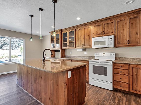 - Features: Custom Cabinets, Granite Counters, Kitchen Island, Lazy Susan