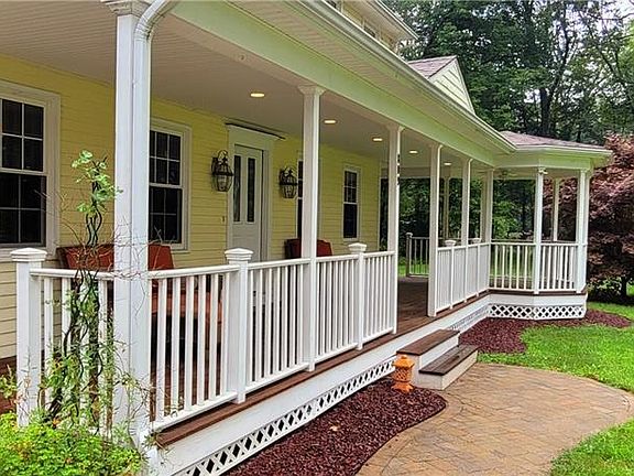 Location, Location, Location. Experience the perfect blend of tranquility and convenience at this stunning 3-bedroom, 1.5-bathroom colonial home on 3 acres of land. Located between route 44 in Smithfield and route 6 West in Johnston, this hidden gem offers the best of both worlds - a peaceful country escape surrounded by nature, while still being just a stone's throw away from shopping and highway access. The charming front porch with a corner gazebo, creates a warm and inviting ambiance. Apple trees, tiger lilies, and an enormous colonial rock wall provide a true feast for the eyes, making every moment spent outdoors a delightful experience. 6 spacious rooms. A Vermont Castings wood stove fireplace insert, perfect for cozy evenings. propane cooking stove and stainless steel appliances in the kitchen. The oversized bedroom with a vaulted ceiling and walk-in closet is a true retreat, providing ample space and comfort. Indulge in luxury in the oversized bathroom, complete with a vaulted ceiling, jacuzzi tub, and a custom corner shower. The 3rd bedroom, currently set up as a home gym, adds versatility to the property. Whether you choose to keep it as is or transform it into a personalized space, the choice is yours. Additional features include a 10 x 18 shed for extra storage, moriarty invisible fence, home security system, washer and dryer for added convenience, and new gutters with gutter guards to ensure low-maintenance living.