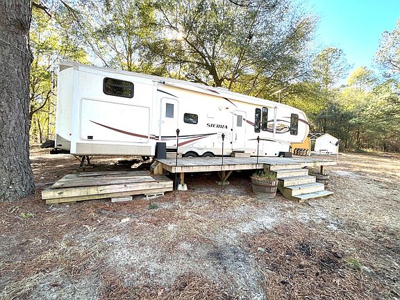 This could be your view! More than 3.3 waterfront acres -- comes with 2011 Sierra Forest River Fifth Wheel (42 ft RV, model 3655AQ). Gorgeous acreage on large pond. Includes well, septic, electric and outbuilding with metal roof. Very private setting with great fishing and a short commute to Plant Vogtle. RV has 2 bedrooms, 1.5 baths, large deck and outdoor kitchen with sink, microwave & mini fridge.