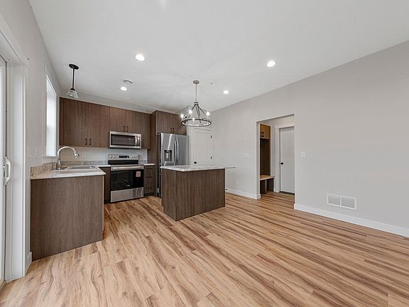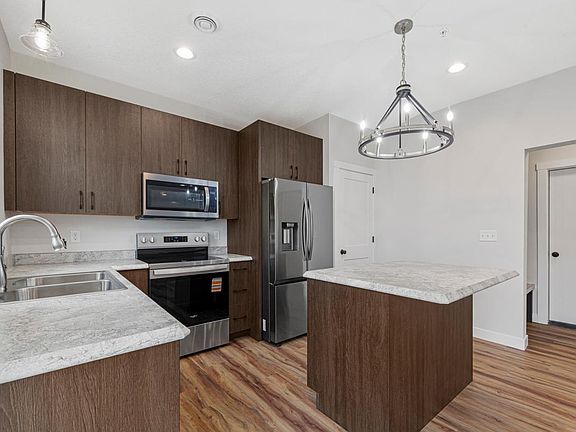 Welcome home to this beautiful new 3-bedroom, 3-bathroom townhome in the sought-after Prairie Gardens Development—ideally located near schools and scenic walking trails. Built with exceptional craftsmanship by renowned builder Gary Crosby Construction, this home showcases thoughtful design and quality throughout. Step inside to find an inviting open-concept layout filled with natural light pouring through oversized windows, creating a bright and welcoming atmosphere. The spacious living, dining, and kitchen areas flow seamlessly together—perfect for both everyday living and entertaining. The kitchen is a true highlight, featuring high-definition custom laminate countertops, a center island, pantry, top-of-the-line stainless steel appliances, and durable luxury vinyl flooring. A patio door conveniently located off the kitchen makes outdoor dining and relaxation a breeze. Retreat to the spacious primary suite, offering a private oasis with a beautifully designed en-suite bathroom and generous closet space.