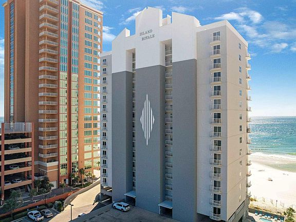 Welcome to Island Royale, located in Gulf Shores, AL on West Beach. This is an amazing location within walking distance to The Hangout, many restaurants, and great shopping. There is a wonderful indoor/outdoor pool, kiddie pool for the lil' ones, and hot tub to relax in after a day of play in the sand. For owners only, there is also a private roof top area with hot tub and lounge chairs! As you enter this well thought out floor plan with 9'ceilings, you'll be delighted to know that there is a walk-in laundry room, and all bedrooms either have their own full bath, or are connected to a full bathroom. The north bedroom even has it's own private balcony, unique to the corner units at Island Royale. The kitchen is nicely equipped with stainless appliances & granite counter tops and is open to the family room. There is easy access to the large balcony from the family room and the primary bedroom with expansive views from this east corner unit. There are also electric storm shutters that are easily operated from inside. Don't miss this great opportunity to own a fully furnished condo with direct, Gulf views and very strong rental income! Call me or your agent today for more details! Buyer to verify all information during due diligence.