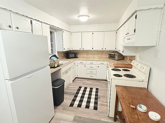 At the edge of this small community is a cozy white painted brick, two bedroom one bath that hugs the city limits. Remodeled just a few years ago top to bottom the 1968 home with large opening between living and kitchen could be just what a person would love to make their own. Includes a laundry room then move to the outside where several out building occupy the property. 25x 25 shop a storage building, cellar and open carport to the west with a carport to the east attached to the house. The shop to the east could hold a vehicle or as a storage area with electric for those evenings that darkness arrives so soon. The carport is accessible via sliding doors to take in relaxing shade in the evenings. Talk about close to the school and sporting events will make it easy to attend any program. Selling conventional or cash and AS IS. Call for access.