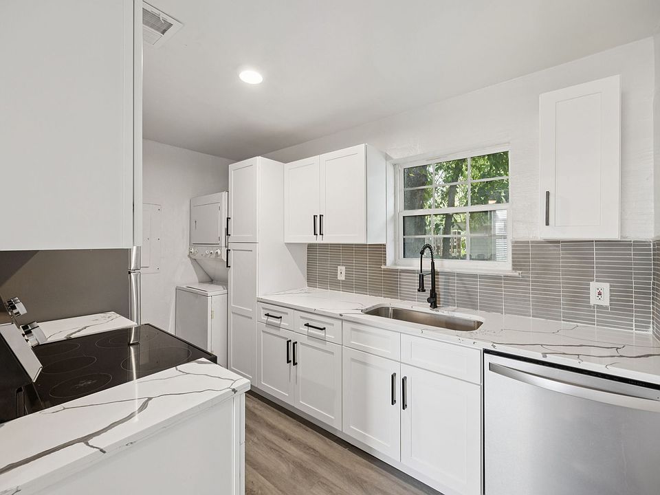 Fully remodeled and move-in ready, this charming rental is the perfect blend of style and convenience! The beautifully updated kitchen showcases sleek black and stainless steel appliances, sparkling quartz countertops, and durable wood-look LVP flooring. Included with the lease are a refrigerator, washer, and dryer making this home truly turnkey. Enjoy the added benefit of a private outdoor storage space, along with a spacious shared backyard. Featuring 2 bedrooms and 1 bathroom, this property is available now and ready to welcome its next residents!