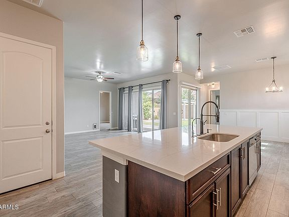 Nestled at the base of South Mountain, this energy-efficient 3-bed, 2-bath home offers 1698 sq. feet of thoughtfully designed living space. Built in 2017 by Bellago Homes, it combines modern amenities with eco-friendly features, making it an ideal choice for those seeking comfort and sustainability. Features include Cambria quartz countertops, plank tile flooring, soft water loop, reverse osmosis system, and ceiling fans in every room. Enjoy an updated backyard with real grass, fire pit area and pergola installed in October 2021. Conveniently situated less than 15 min. from downtown Phoenix, providing easy access to urban amenities while maintaining a tranquil suburban feel.