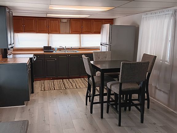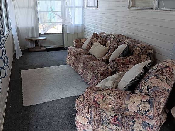 Dont miss out on the best deal in this High demand 55+ community with lot rent only $608 beginning January 2026. You will enjoy the updated plank flooring and new carpet in the bedrooms. The daylight windows make the home cozy. Home features 2 bedrooms with built in storage and plenty of closet space. The large kitchen has new stainless frig and stove and plenty of dining area for you and your guests. The huge Florida room can also be a 3rd bedroom if you need the space. Furniture currently in the home will stay. Outdoor patio allows for relaxing in the sun. Home also features large shed for all your storage needs. Bathroom has walkin shower and new toilet. Carport offers cover for up to 2 vehicles. Priced to sell fast at $18,900. Cash only
