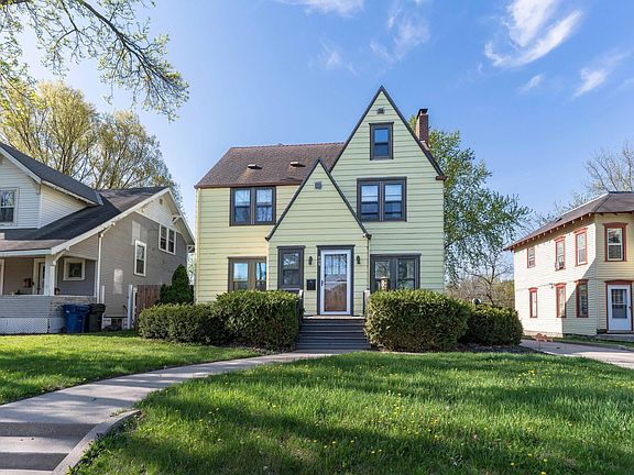 This classic two-story is full of charm and potential, featuring an eat-in kitchen or office nook, formal dining with built-ins, and a large living room with a cozy wood-burning fireplace. Hardwood floors are found in the upper-level bedrooms, with possible hardwood under the main floor carpet. Bonus attic space adds flexibility. Other highlights include a laundry chute, low-maintenance metal siding, forced-air furnace with central air, all appliances included, and a concrete driveway leading to the 2-stall detached garage. Enjoy the oversized lot with a fire pit—perfect for summer nights. Priced at $175,000 with updates in mind—this character home won’t last long!