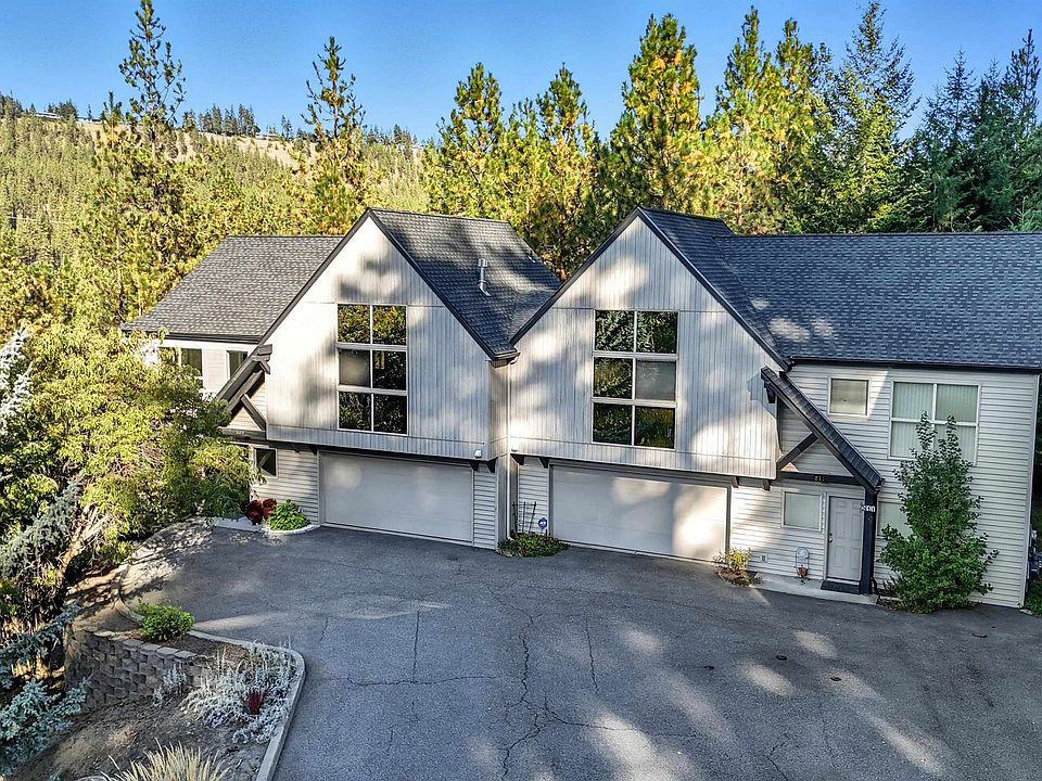 Tucked among the trees yet minutes from downtown Spokane, this fully remodeled 3 bed, 2 bath townhome offers the perfect blend of modern updates and natural surroundings. Bright and open with tons of windows and soaring cathedral ceilings, the main living area is filled with natural light and warmth from a cozy gas fireplace. The kitchen has been completely updated with granite countertops, white cabinetry, a large island with bar seating, and LVP flooring throughout. The spacious primary suite and two additional bedrooms provide comfortable, flexible living. Enjoy easy, low-maintenance living with a new roof in 2025, a newer gas furnace, and an insulated garage door. HOA covers water, sewer, garbage, snow removal, landscaping, and exterior liability insurance. Located just off the main road for easy access, yet surrounded by nature for peace and privacy. Townhome is the left unit. Don't miss this rare opportunity in highly desirable Qualchan Hills!