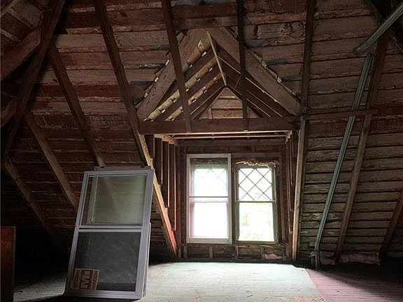 Pre-restoration special! New tear off roof just installed. Lots of original trim and a pocket door between the Living Room and Dining Room. Original pantry. A main floor bedroom and bath was added to the original house. The garage is gone but the foundation is there. The front porch is gone. A nice structure that needs total rehab and the seller is selling "as is". Great for investor or someone who wants to restore this home back to it's original 1915 glory.