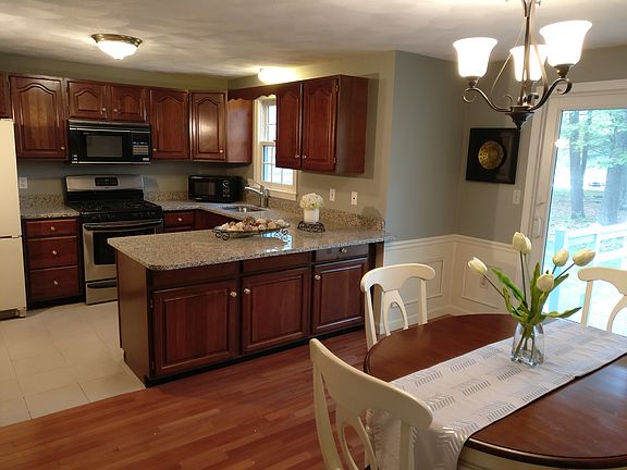 Gorgeous waterfront unit in desirable Williamsburg Condominium. This well maintained unit offers cherry kitchen cabinet with new granite counter top, charming hardwood floor in living and dining room, beautiful wainscoting in the dining area, tile in kitchen and both bathrooms. Newer Anderson sliding French door leads to extended deck overlooking beautiful backyard and river view. Central air conditioning, 1st floor laundry. Quality finished basement with built-in cabinets and shelves perfect for entertaining and kid playroom. One of the rare unit with front porch, great for when bringing in the grocery in the rain/snow. Lower condo fee. This unit is not in flood zone. This unit is just steps to the walking trails along Merrimack River, community pool, tennis court. Minutes to tax-free NH shopping mall area, easy access to Rt 3. Enjoy all the amenities of this complex, watch the boats and the crew team go by and feel like you are on vacation every day. A great place to live!