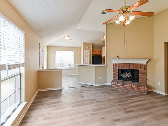 Spend time with your pets scampering in the grassy backyard at this three-bedroom, two-bathroom rental home in Memphis, Tennessee. Large backyard-facing windows flood the living room with sunshine, while a red brick fireplace helps create a soothing ambiance in the evening. Side- and back-facing windows allow more natural light into the dining room, and a door opens to the backyard for enjoying meals on the patio. The carpeted main bedroom has an en-suite bathroom with an oversized tub, a walk-in shower, a dual-sink vanity, and a walk-in closet providing generous storage for clothing and accessories. Contact us to see what else this pet-friendly rental home has to offer.