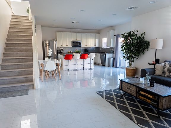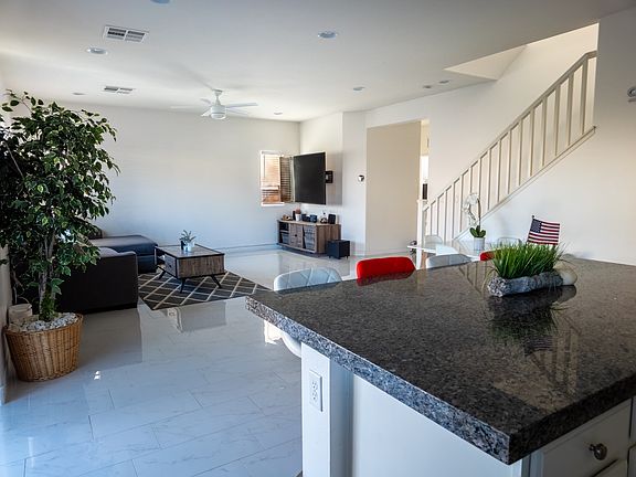 Welcome to your dream home in a sought-after gated community in Southwest Las Vegas. This Beautiful FULLY-FURNISHED home 1,887 sq. ft. property of 3 bedrooms plus a loft and 2.5 baths is designed for those who appreciate modern layout, comfort, and convenience. Key Features: * Fully Furnished: Move in stress-free with elegant furnishings throughout the property. * Smart Home Features: Control lights, fans, thermostat, garage door and more with ease. * 24/7 full CCTV around the property * Flooring: Tile and Vinyl * Modern Open-Concept Kitchen, fully equipped tableware: Large quartz island, top-of-the-line stainless steel appliances, and all the tools needed for gourmet cooking and entertaining. * Spacious Master Suite: Includes a king-sized bed, custom walk-in closet with shelving, and a spa-inspired bathroom with a sleek modern shower. * Bright Interiors: Minimalist design, high 9 ft ceilings, and large windows bring in abundant natural light. * Versatile Loft Space: Perfect for an office, playroom, or relaxation area. * L-Shaped Office Desk: Ideal for maximum work efficiency. * Gorgeous Backyard: Covered patio, artificial grass, and lush landscaping create a serene outdoor space. * Garage: 2-car garage with epoxy flooring, built-in storage, personal gym ladder with weights, and a water softener system. * Community Perks: Enjoy the community pool and spa area. Prime Location: * The home is located near two exits on highway 215: Buffalo and Durango. * The Bend (restaurants and shopping), IKEA, Durango Station Casino, Intermountain Hospital few minutes away * 15 minutes to Harry Reid Airport and the Las Vegas Strip * 10-15 minutes to Downtown Summerlin, Red Rock Casino and Red Rock Canyon Additional Details: Included Utilities: High-speed internet, garbage, and sewer.