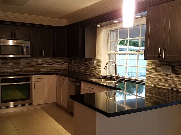 Completely Remodeled 3/2.5 Pool Home with Garage in a very desirable location within blocks of the 826 ramp. The home features many upgrades which include a tile roof, all wood modern kitchen with granite countertops, top of the line stainless steel appliances, neutral floors throughout, new doors, crown moldings, new bathrooms, new matching door hardware throughout, new lighting, side gates, new water heater, aluminum accordion shutters throughout and much more. The master suite features its own bath and a walk-in closet. The pool area is great for entertaining with an oversize terrace, a pool bath and new aluminum fence for privacy. Professionally landscaped and ready to move in.