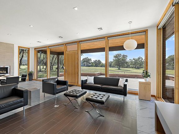 Scenic acresWraparound porch viewsPolarized floor-to-ceiling windowsRecessed lightingSleek contemporary linesHand-selected quartz countertopsBuilt-in storage closets