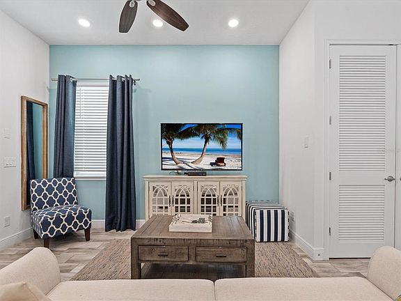 Stunning 2 bedroom, 2 bathroom POOL COTTAGE located in the heart of Margaritaville Resort! This immaculately kept, highly sought after floorplan, rents extremely well and is just moments away from the theme parks. Fully furnished with Margaritaville's signature furniture package and decor, this cottage offers two primary bedrooms, one downstairs and one upstairs, private balcony off of the upstairs bedroom, BOSE IN CEILING SURROUND SOUND, high end wood look tile throughout, upgraded quartz countertops, wooden stairs, oversized private owners closet, high ceilings, and so much more. Step out onto the spacious FULLY FENCED backyard to soak up the sun in your private, heated pool, or head upstairs to the balcony to watch the beautiful Florida sunsets with a glimpse of the Disney fireworks. This property can be used as a full time residence, second home, short term or long term rental property. This resort style community features two large swimming pools, multiple restaurants and bars, fitness center, full service spa, lush and tranquil walking trails to all ends of the community, as well as a moments walk to all of the restaurants, bars, shops and entertainment that Sunset Walk has to offer! Low maintenance resort living includes fully maintained grounds, home exterior, lawn care, and 24/7 roaming and manned gated security entrance.