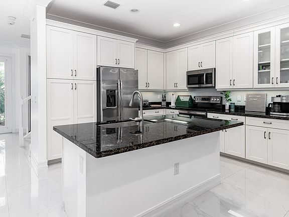 Spacious floorplan offers 5 Bedrooms, 4 Bathrooms plus a Loft/Second Floor Living Space. Custom finishes throughout home such as 32'' White Porcelain Tile throughout, Crown Molding throughout, Recessed Lighting in every room, Custom Closets, Custom Window Coverings; Relax in your Extended Paver Patio, Covered Screen Enclosure, Impact Windows & Doors, Tiled Backsplash. The Owners Suite w/his/hers Custom Closets, Second Bedroom (office/den) & 2 Bathrooms are on the 1st Floor. There are Three Bedrooms & a Loft on the 2nd Floor. More...