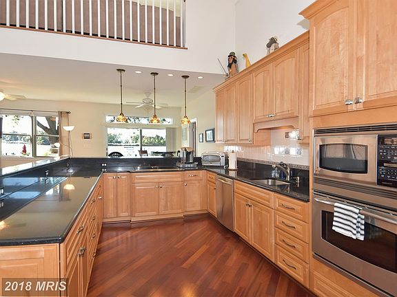 WATERFRONT: Newer, 2600 SF home has DEEP-WATER PRIVATE PIER (WOW! 8+ ft water depth) w/ quick Ches Bay access . Bright, open floor plan with 2-story great room, hardwood floors, granite counters in kitchen and bathrooms. Main level master suite with jetted tub, separate shower & heated floor. 2 more BRs upstairs & optional 4th BR + home office on main level. Waterside deck and fantastic views!